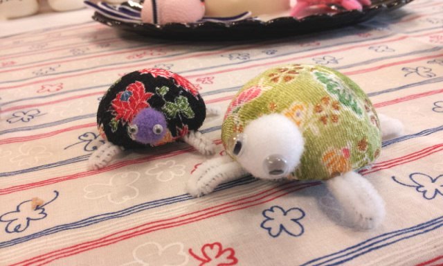 亀は大きさも変えて数種類あります。まあ、どの作品も手作りなので、大きさも模様も同じではありません。「応援もなか」で購入できればよいのですが、このジョイナスアイトピアは基本、コミュニティサロンであり、ネットでの販売にはマンパワーの不足により、対応できないのが現状です。人手がなくて、売れるものも売れないのは、本当に悔しい限りです。しっぽとして、イベント出展を要請された場合には、商品として出せるのですが。