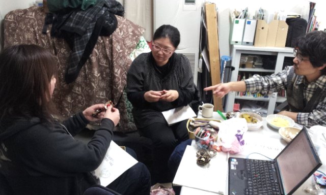 支援で頂いたファスナーを使ったアイデア商品で、ちょっとしたコサージュに変身。とても、元ファスナーとは思えない仕上がりと質感で、とても高級感あふれる花のコサージュになっています。それでも、商品としてみるには、いろいろと問題があり、そこをどう改善し質を一定で保たせるかという事は、どの団体でも試行錯誤している悩みの種の一つでもあります。