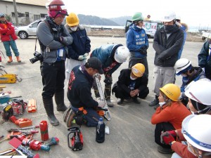 これは、日本財団のクロさんこと、黒澤さんが主宰している講習会で、DRTという、災害時緊急救援の技術スペシャリストの団体です。なお、ヒューマンシールド神戸の助さんこと、吉村さん、森の楽園のとっちさんが、講師です。講習会では、また、いつ来るか分からない災害に対して、人命救助を目的に、チェーンソーの取り扱い方、エンジンカッターの取り扱い方、重機の基本的な操縦方法など、知っているのと知らないのとでは天と地の差がある事を習いました。