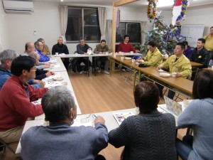 その中で、大西さんの話もあり、行政に物申すには、とにもかくにも団結力で、今は自治会長は6団地の6人しかいないけれど、連合会を作って、これからできる自治会の手本となろうと、仮設住宅自治会連合会(仮称)が発足、今後、月に一度の会議を行うことが決定しました。