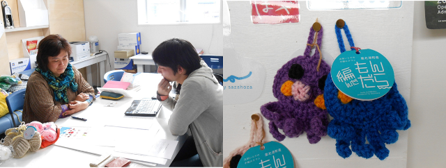 「編んだもんだら」という、ご当地物の名産をモチーフにした、手編みのエコたわしの企画、制作、販売をされています。「もんだら」とは東北の方言で稲藁を束ねて作ったたわしの事です。昔はこの「もんだら」と灰を使って磨き洗いをしたそうです。