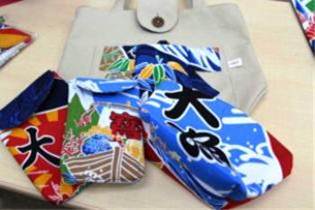 Coco唐様は、宮城県気仙沼市唐桑地区に工房を構え、大漁旗をイメージした布地を使い、バッグ等、5アイテムを製作しています。