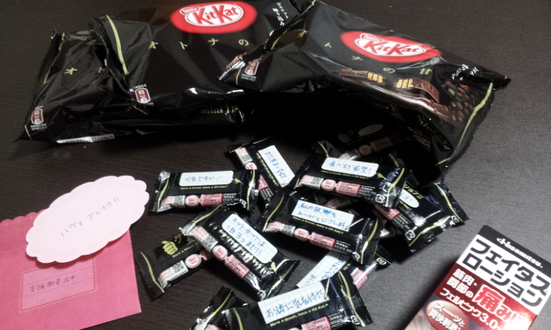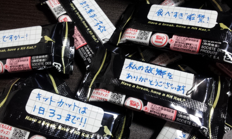 支援物資届きました。 2012/5/17未分類shippo 毎度、広部です。 今日は、しっぽへの支援物資を頂きました。非常にありがたい物資群です。 ひろべ大好き、大人のキットカット!! おまけにコリ症の自分の為に、フェイタスまで。涙がちょちょぎれます。でも、これでまた頑張れると、食いしん坊の私は、さっそくいそいそとキットカットを食べ始めたら、ん? しっかり、規制がかかっていました。 ・・・見抜かれている。 ・・・食べ過ぎ厳禁。・・・キットカットは一日3つまで。そんな殺生な。 でも、はなえ先生、ありがとうございます!(5つ目をほうばりながら) Tweet