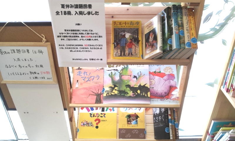 本日、みなさまのお気持ちで購入させて頂いた、夏休み課題図書全18冊を陳列できました!