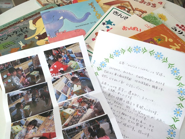 ちょうどこちらにも、ママさんたちの活動団体があります。ちょうど絵本が必要でした。お手紙にあるように、絵本は心の栄養です。なるべく多くの子供たちに絵本を見てもらえるように頑張ります。