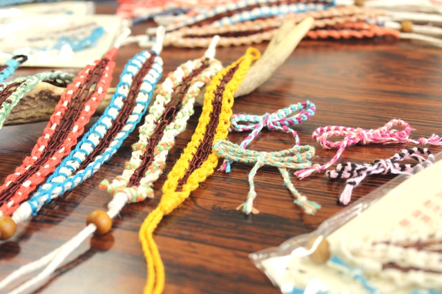 さすがに、ミサンガを作る間は、みなさん真剣。お互いにいろいろな工夫を凝らして、編み込んで作るので、良いものは互いに教え合い、切磋琢磨しています。色遣いの工夫、編み方の工夫、糸の種類の工夫など、ミサンガ一つに、本当によくそこまでというほどのエネルギーが使われているのに、びっくりしました。