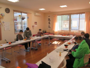 「こういうのが苦手なんだ」と遠慮しがちに参加されていた方がいらっしゃったのですが、周りの方のアドバイスもあり完成すると楽しかったと言っていただけたのがうれしく思った回でした。