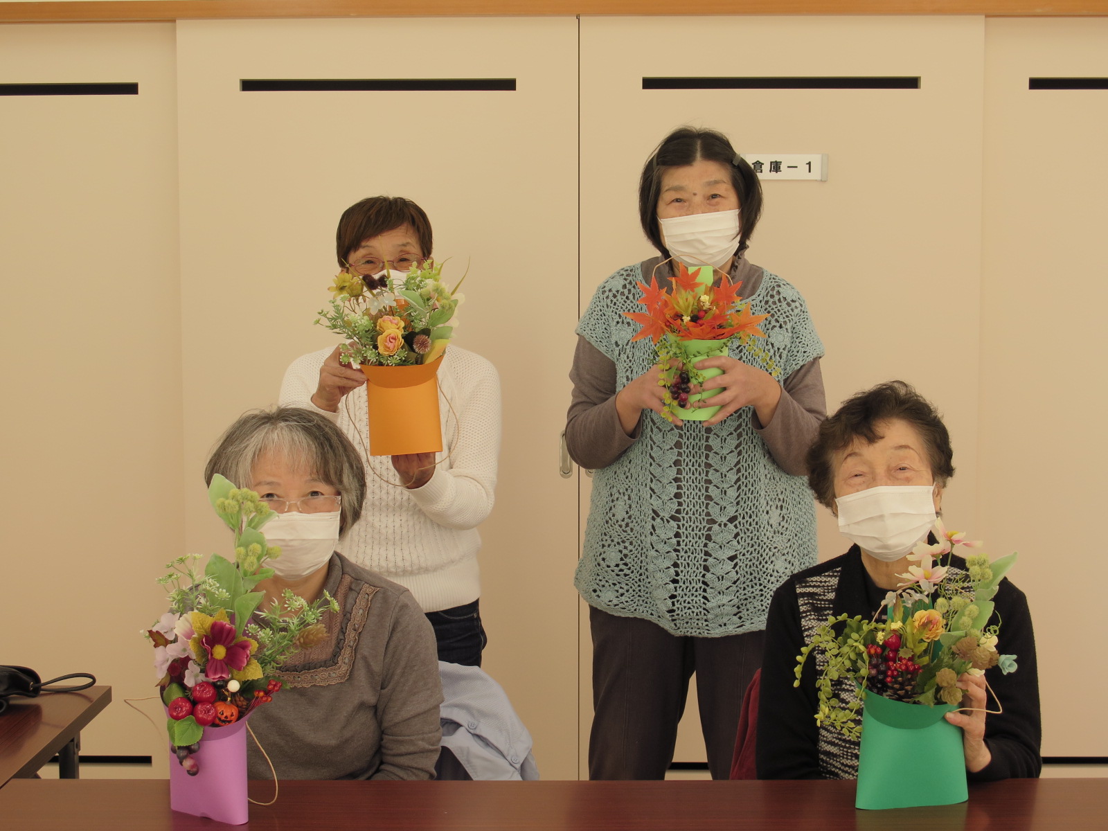 作品を掛けて飾る人、花瓶の様に立てて飾る人などそれぞれの個性が出た製作となりました。